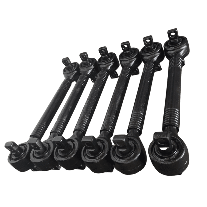São barras de reação que conectam eixo e chassi (longitudinais, transversais ou diagonais), ajudando a alinhar os eixos, manter a estabilidade e evitar desgaste irregular dos pneus